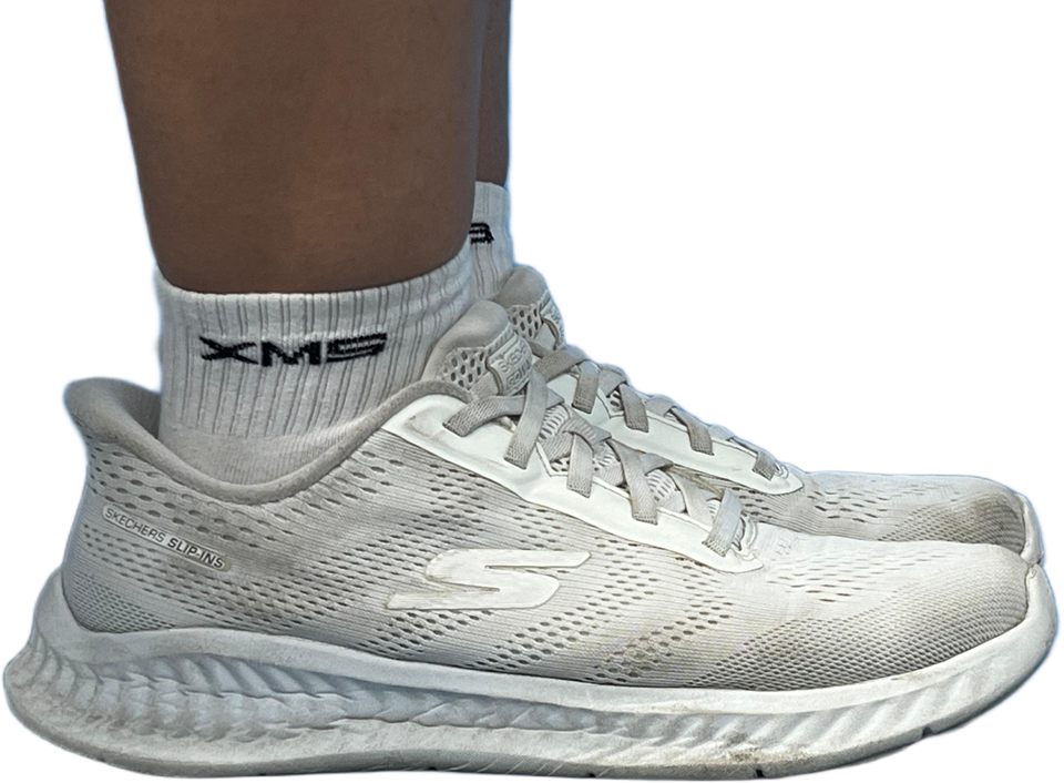 Only the Xinmin socks can be worn and must fully cover the ankle bone.