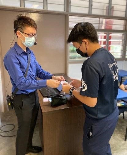 A Sec 3 student receiving his NRIC as part of a citizenship lesson |